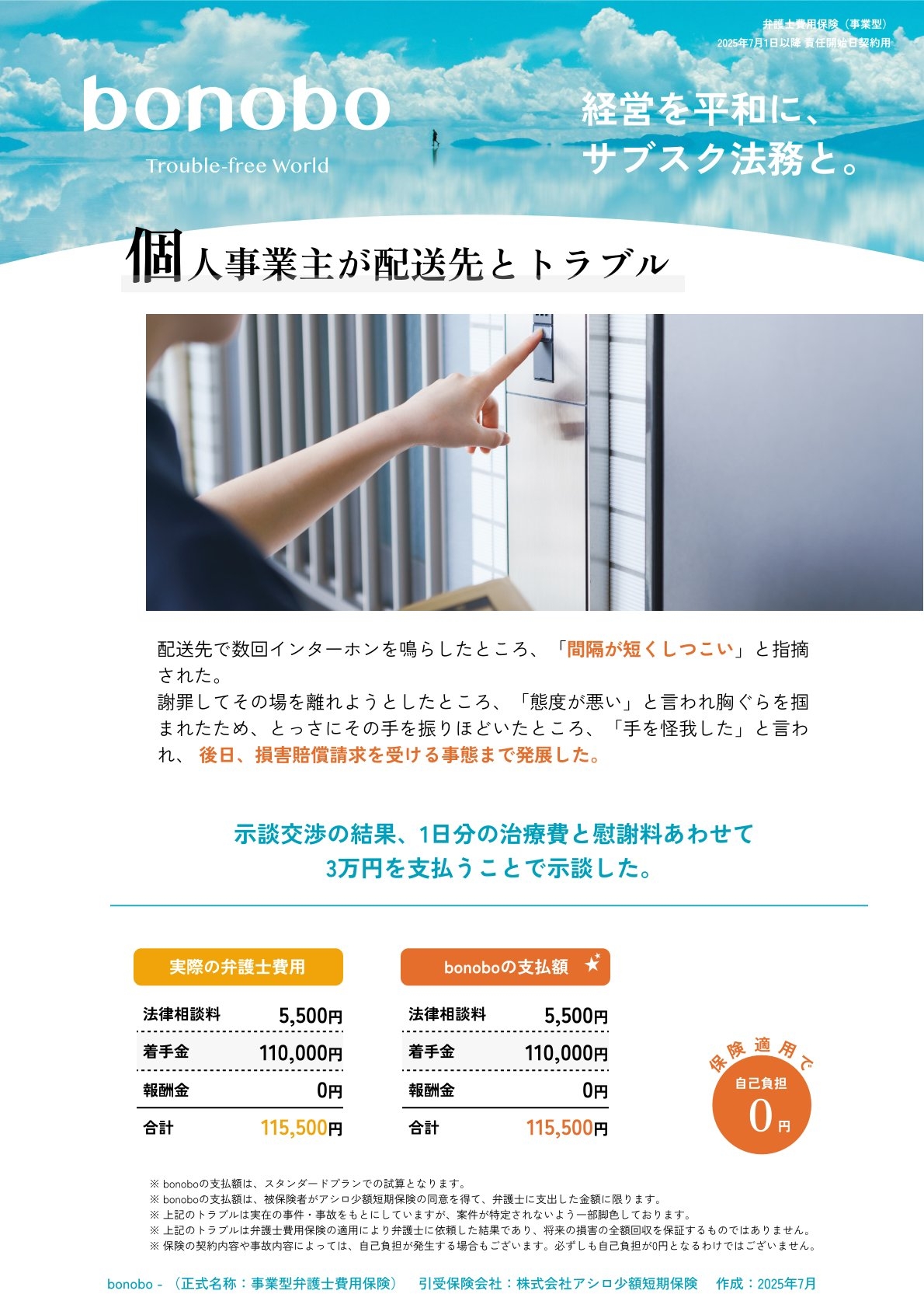 ※ bonoboの支払額は、被保険者がアシロ少額短期保険の同意を得て、弁護士に支出した金額に限ります。