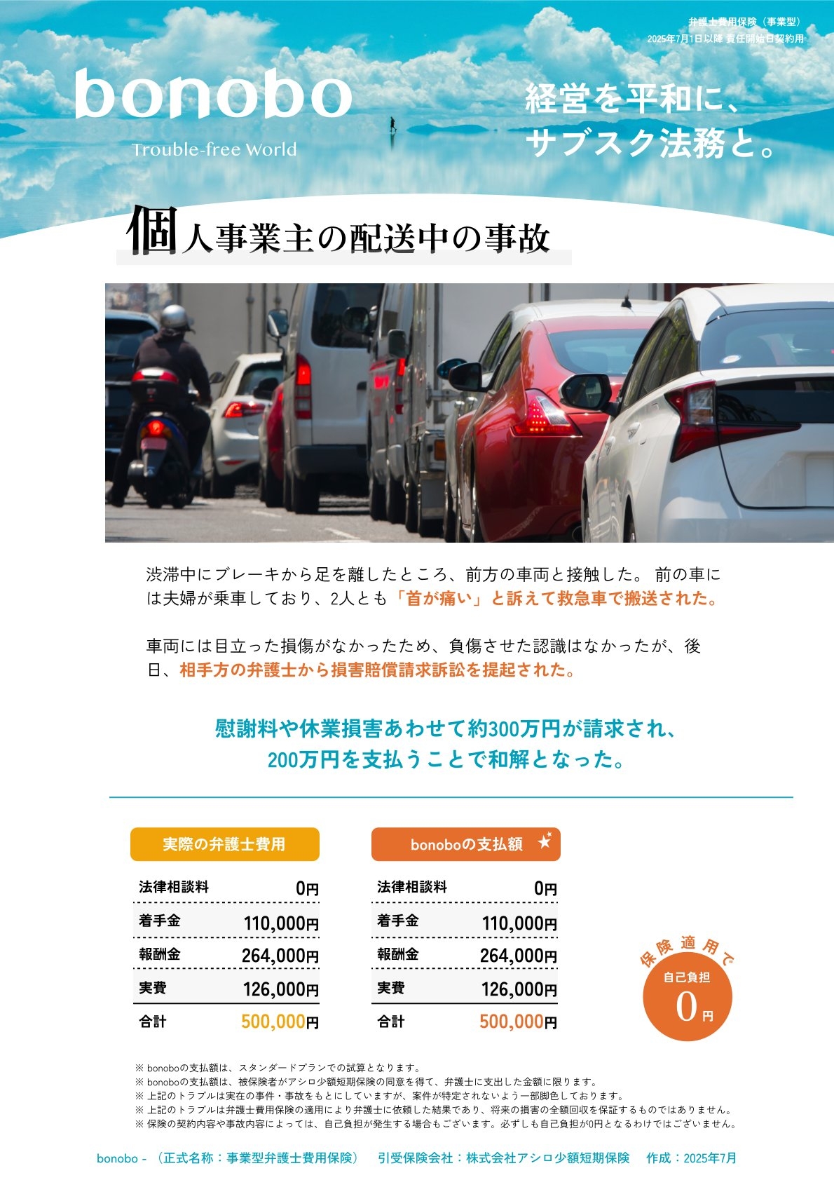 ※ 上記のトラブルは弁護士費用保険の適用により弁護士に依頼した結果であり、将来の損害の全額回収を保証するものではありません。